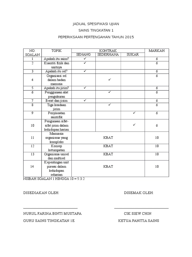 Doc 58364167 Contoh Jadual Spesifikasi Ujian 1 Mohd Zamahshari Academia Edu