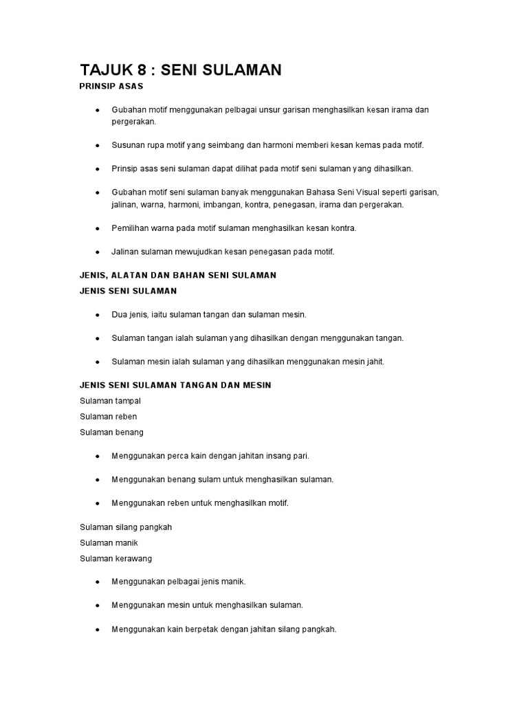 Tajuk 8 Seni Sulaman Pages 1 8 Text Version Anyflip