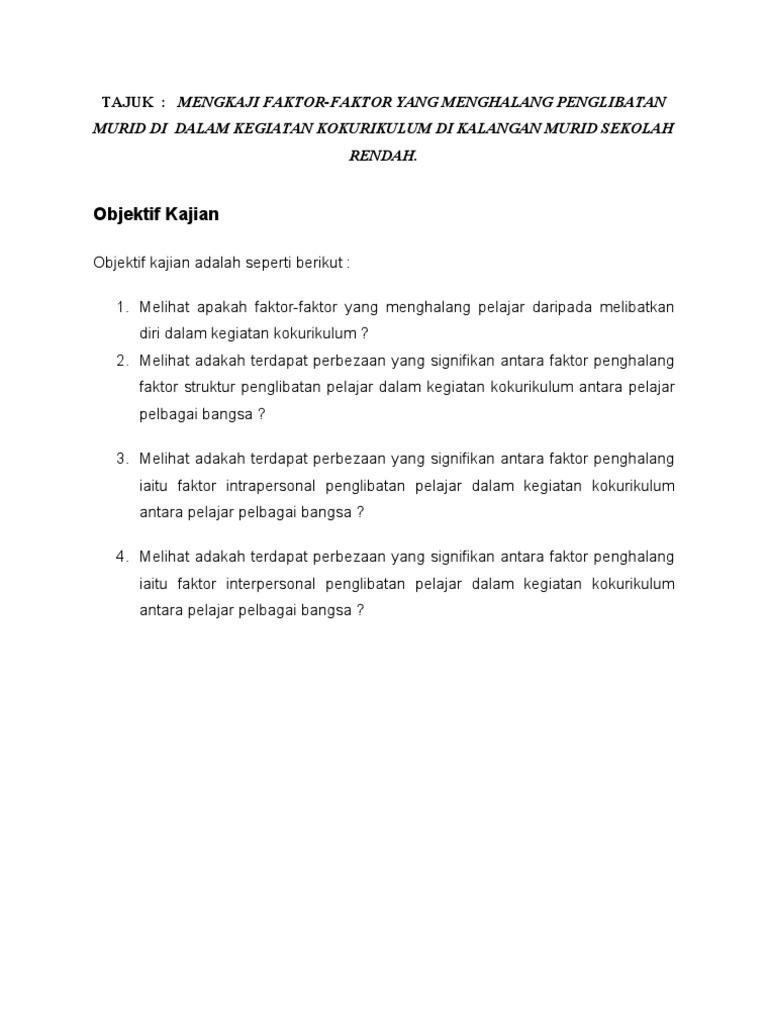 Doc Faktor Yang Mempengaruhi Penglibatan Pelajar Dalam Aktiviti Kokurikulum Di Sk Tmn Tun Aminah Firdaus Maskan Academia Edu