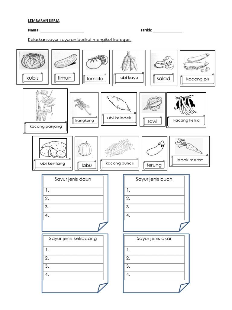 Lembaran Kerja Kategori Sayur