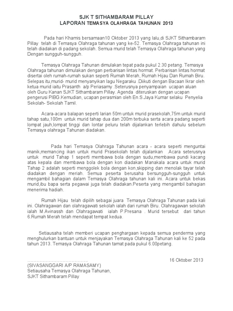 Laporan Temasya Sukan Tahunan Pdf