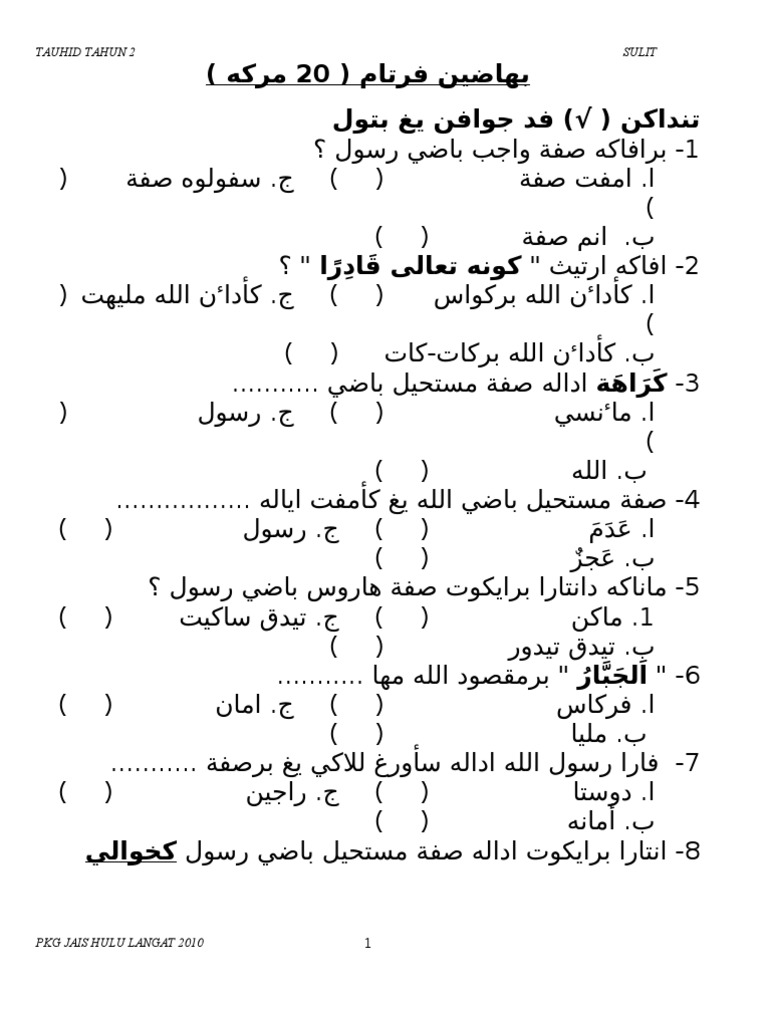 Soalan Jawi Tahun 2 Jais Persoalan X
